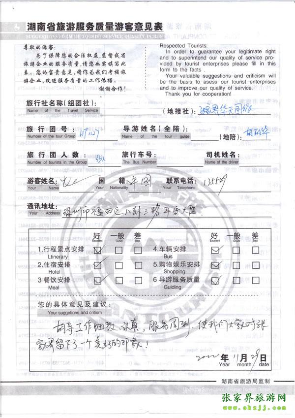- 游客夏先生為表揚導游李姣姣寫來表揚信致我張家界... [14811]