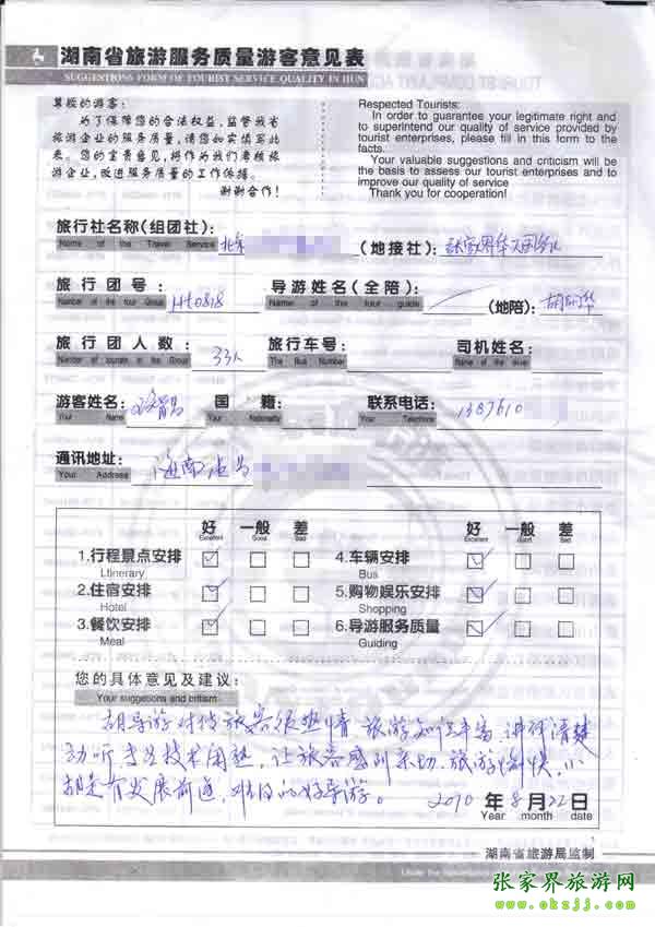 - 游客夏先生為表揚導(dǎo)游李姣姣寫來表揚信致我張家界... [14811]